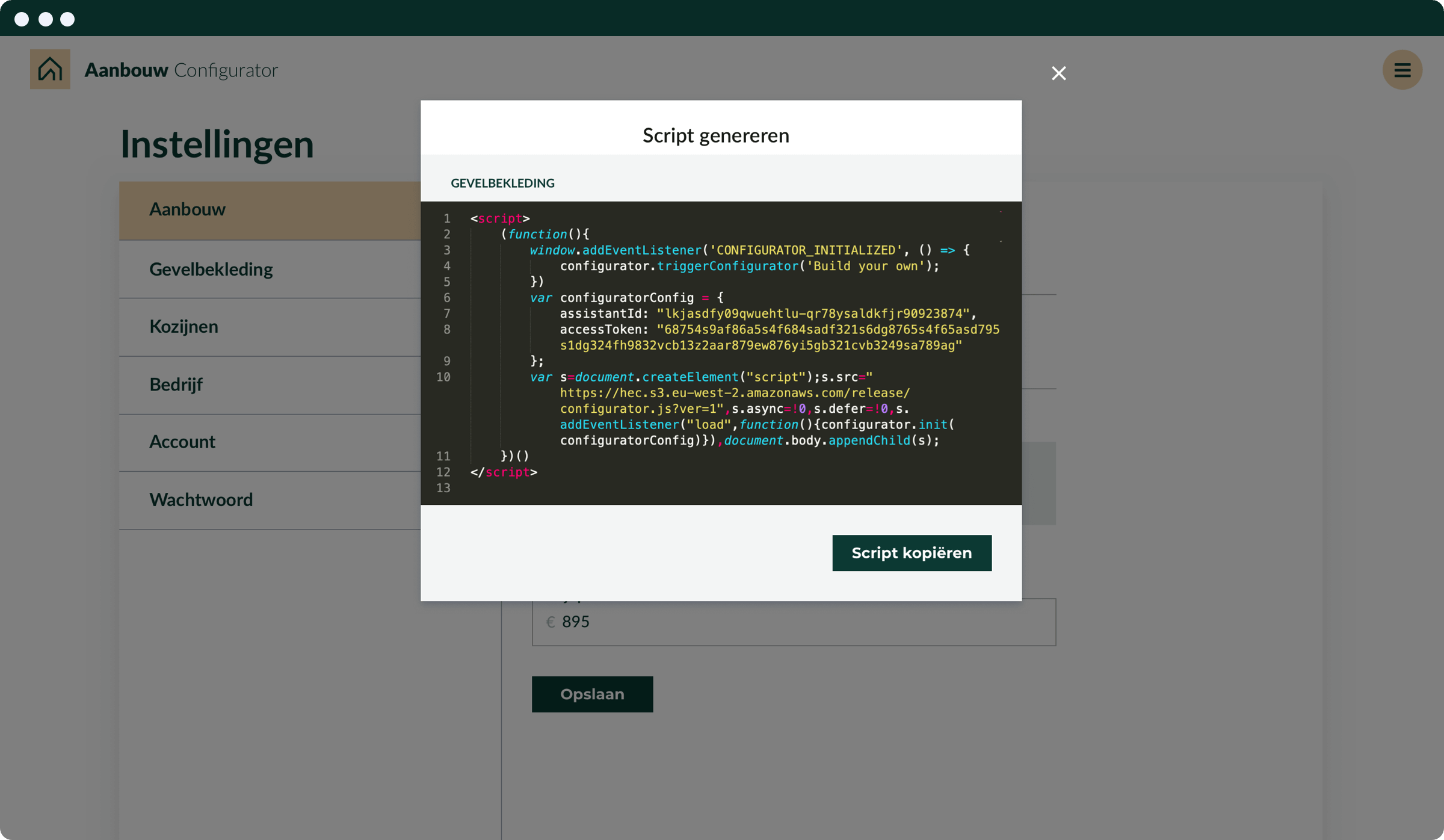 Plaats de configurator op uw eigen website middels een gegenereert stukje code
